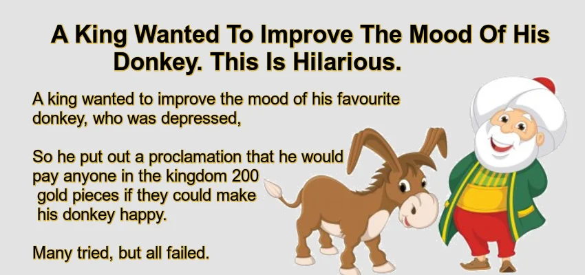 A king wanted to improve the mood of his favourite donkey, who was depressed, So he put out a proclamation … Read more