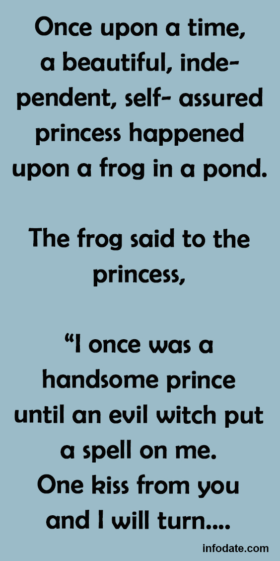 Once upon a time, a beautiful, independent, self-assured princess happened upon a frog in a pond.