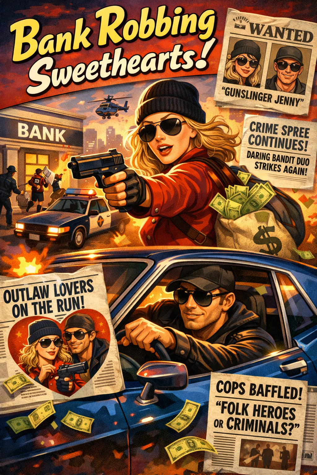 Jeff and his girlfriend Jenny decide to become bank robbers. Jenny does the actual robbing at gunpoint inside the banks while Jeff waits outside as the getaway driver. They are initially successful with a string of heists that make headlines, and they become folk heroes.