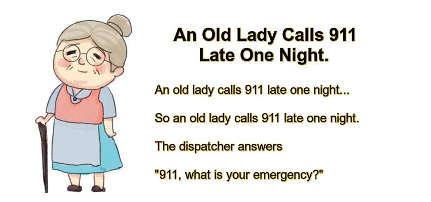 An old lady calls 911 late one night… So an old lady calls 911 late one night. The dispatcher answers … Read more