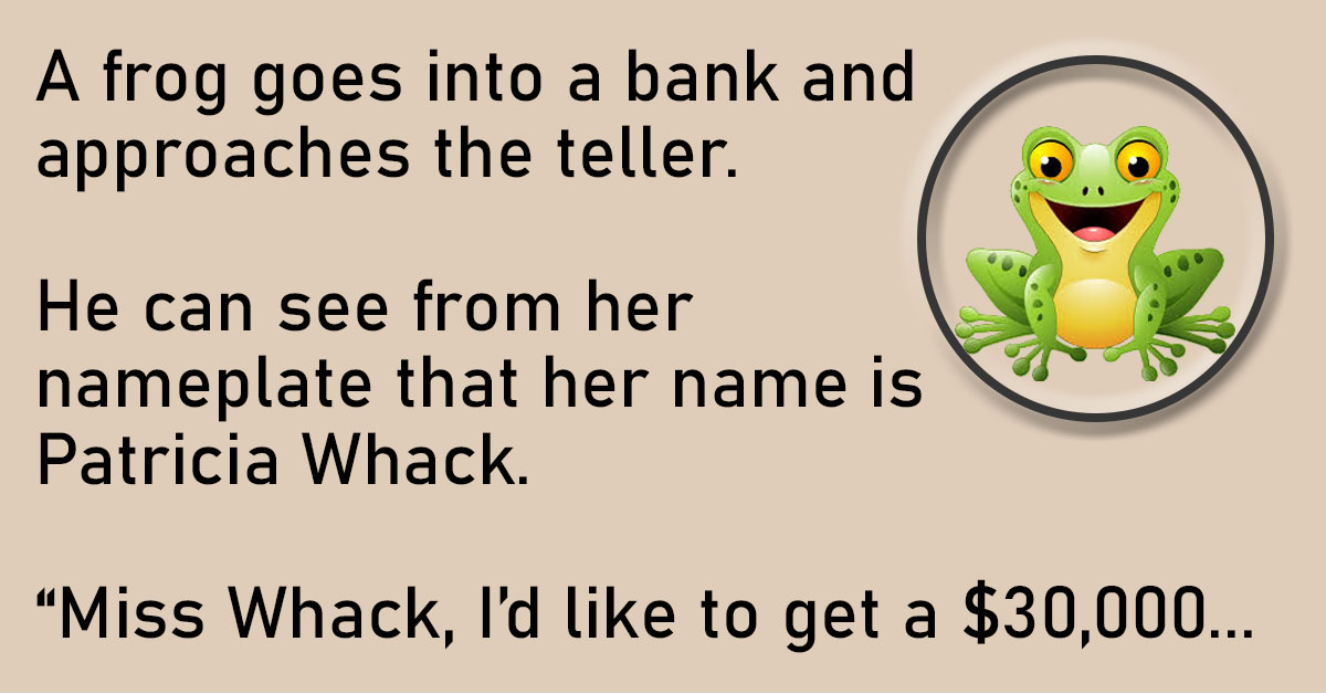 A frog goes into a bank and approaches the teller. He can see from her nameplate that her name is … Read more