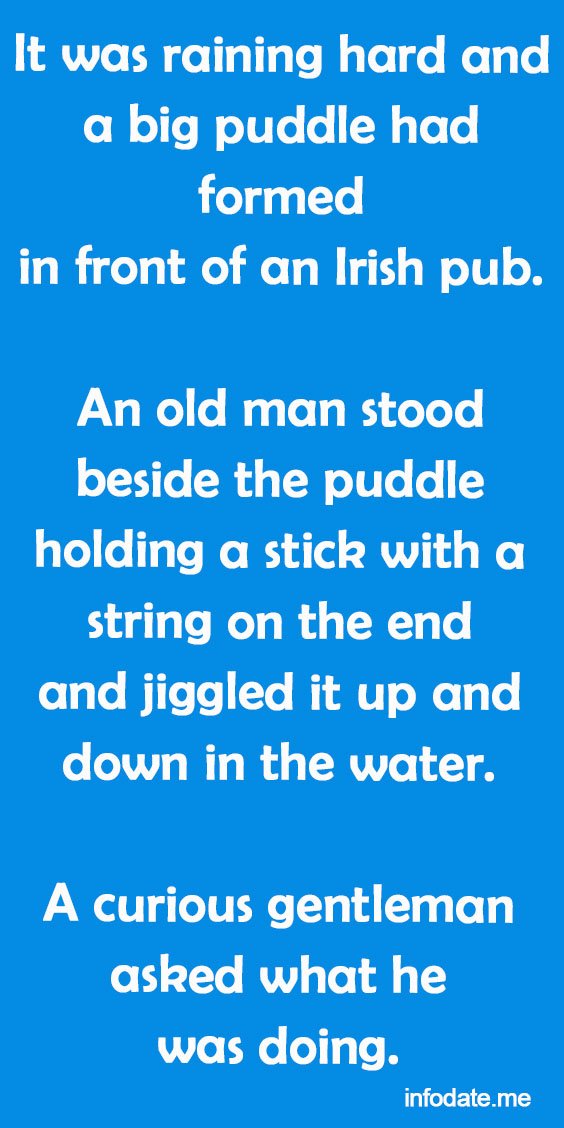An old man stood beside the puddle holding a stick with a string on the end and jiggled it up and down in the water.