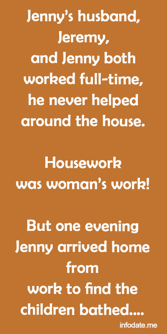Jenny’s husband, Jeremy, and Jenny both worked full-time, he never helped around the house.