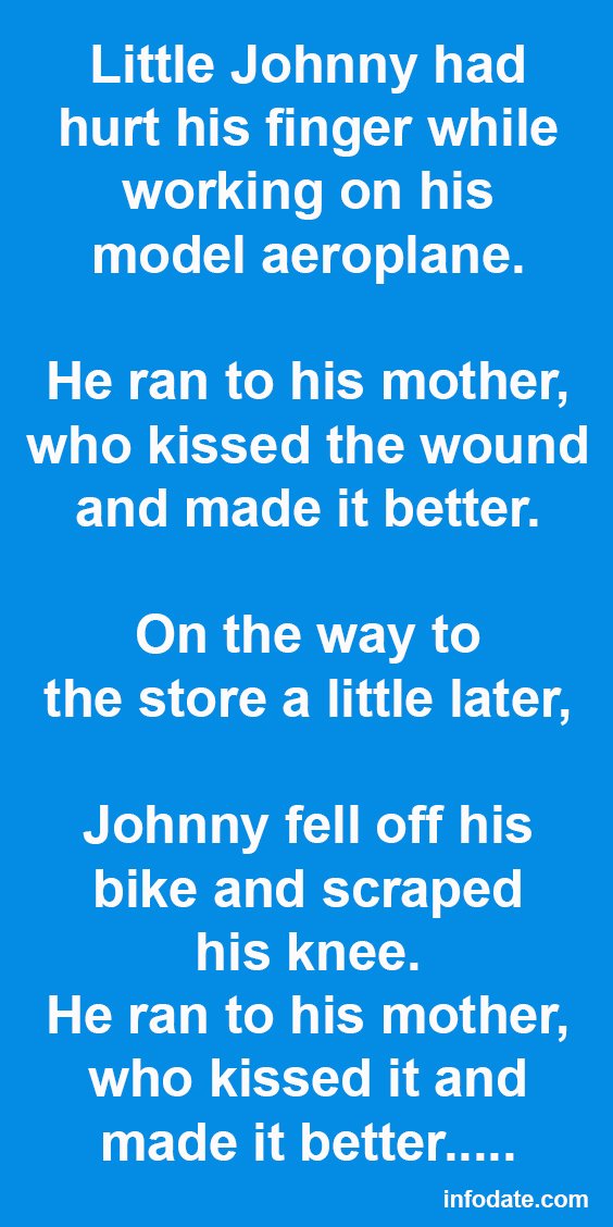 He ran to his mother, who kissed the wound and made it better.