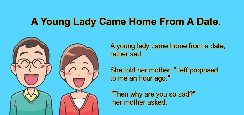 A young lady came home from a date, rather sad. She told her mother, “Jeff proposed to me an hour … Read more