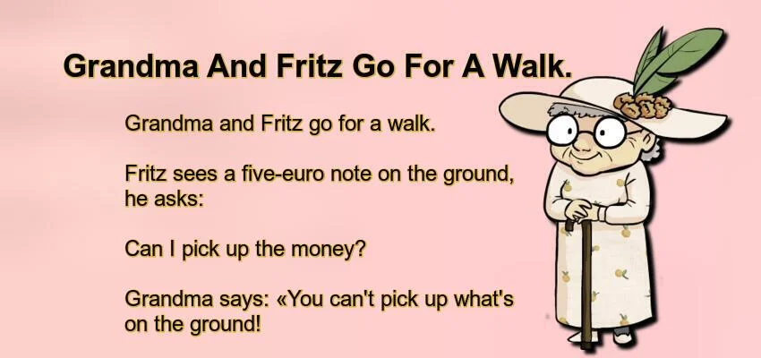 Grandma and Fritz go for a walk Fritz sees a five-euro note on the ground, he asks: Can I pick … Read more