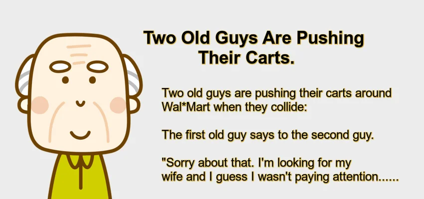 Two old guys are pushing their carts around Wal*Mart when they collide: The first old guy says to the second … Read more