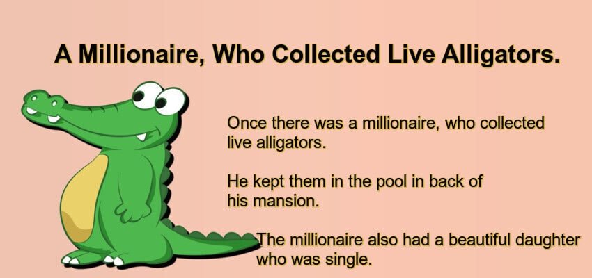 Once there was a millionaire, who collected live alligators. He kept them in the pool in back of his mansion. … Read more