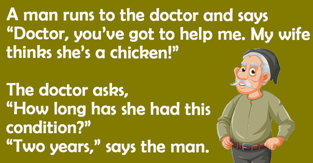 A man runs to the doctor and says “Doctor, you’ve got to help me. My wife thinks she’s a chicken!” … Read more