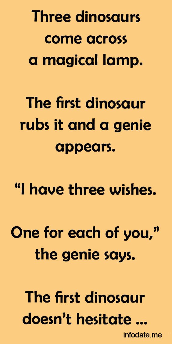 The first dinosaur rubs it and a genie appears.